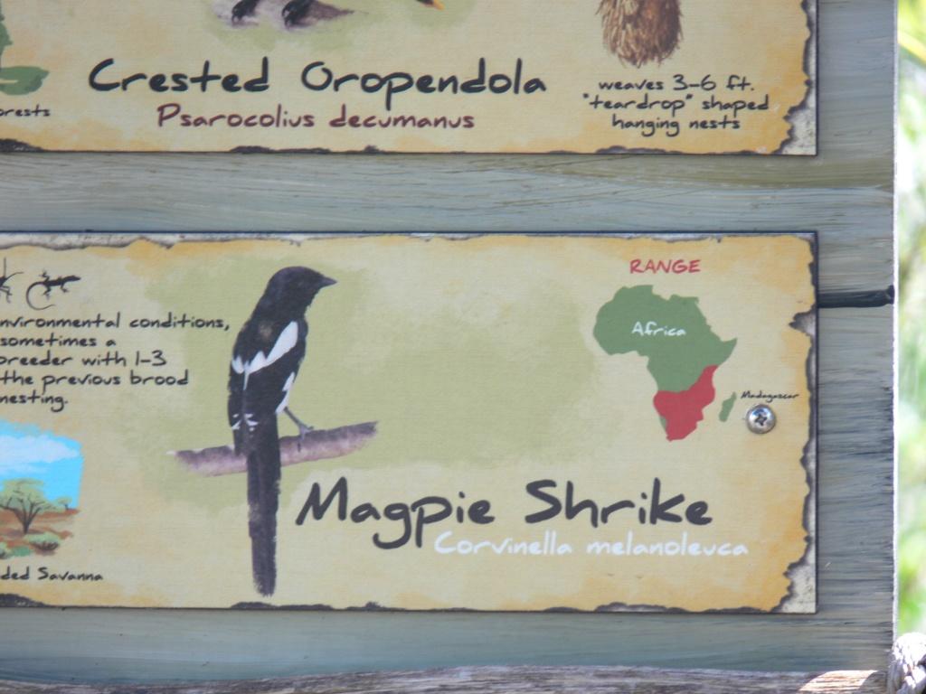 Magpie Shrike (Urolestes melanoleucus) sign by Lee Published February 16, 2012 at 1024 × 768 in Birdwatching at the Lowry Park Zoo 2/15/11 ← Previous Next → Magpie Shrike (Urolestes melanoleucus) sign by Lee LPZ 2-15-11 Share this: Click to email a link to a friend (Opens in new window) Email More Click to share on Pinterest (Opens in new window) Pinterest Like Loading...