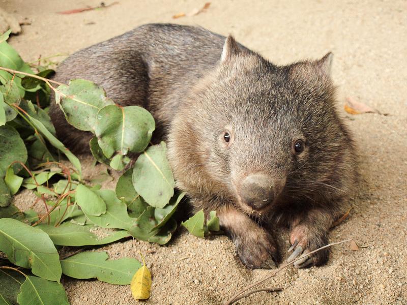 Like many of Australia’s animals, the wombat is a marsupial, having a pouch in which its prematurely born young complete their development. The pouches owned by most marsupials are open at the top toward the mother’s head. This works fine for the kangaroo and other marsupials – no one ever saw a kangaroo standing on its head.