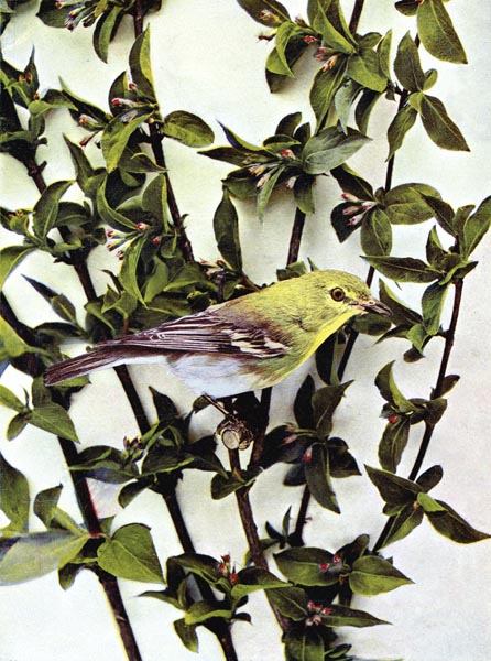 HE popular name of this species of an attractive family is Yellow Throated Greenlet, and our young readers will find much pleasure in watching its pretty movements and listening to its really delightful song whenever they visit the places where it loves to spend the happy hours of summer. In some respects it is the most remarkable of all the species of the family found in the United States. “The Birds of Illinois,” a book that may be profitably studied by the young naturalist, states that it is decidedly the finest singer, has the loudest notes of admonition and reproof, and is the handsomest in plumage, and hence the more attractive to the student.