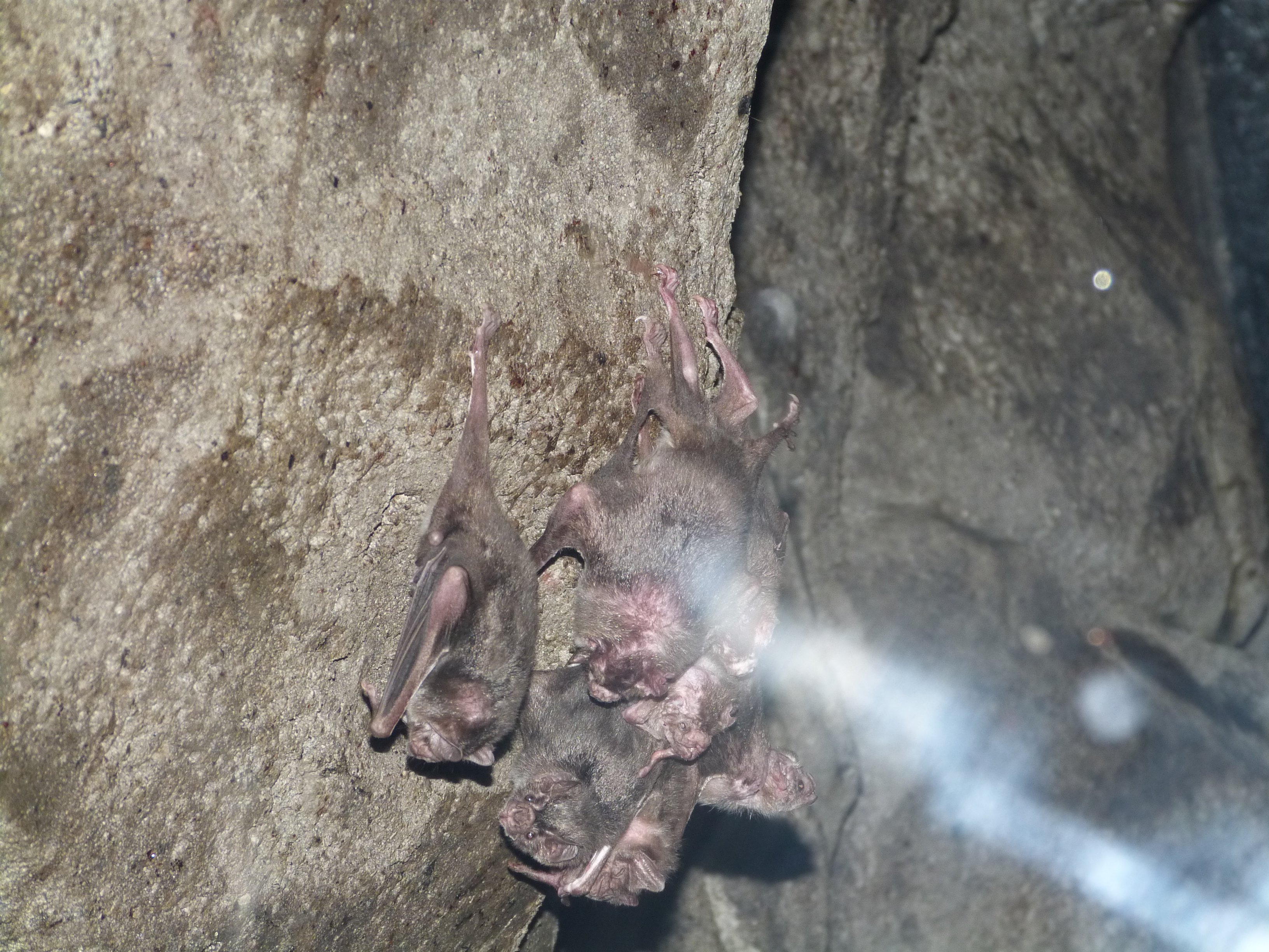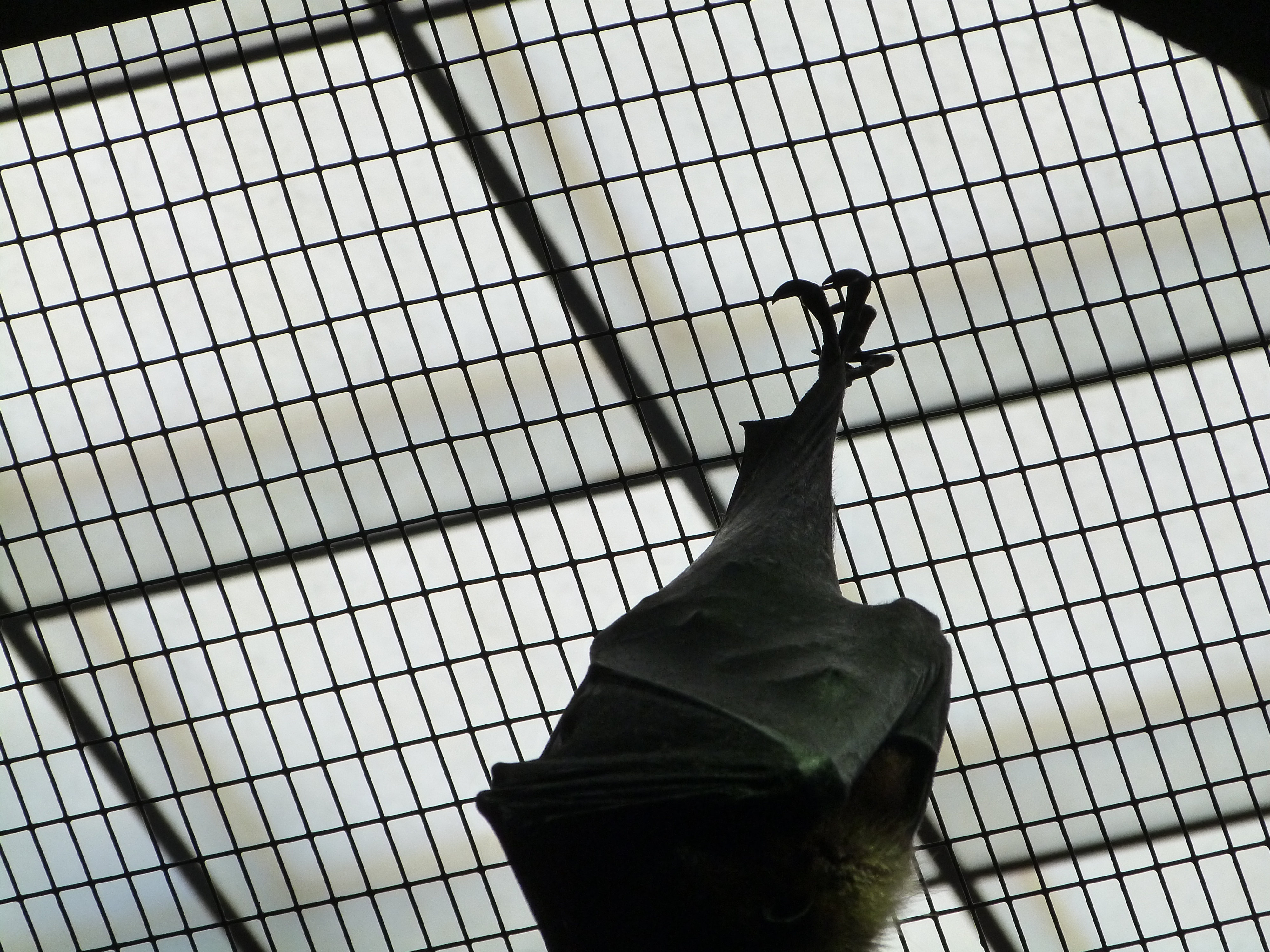 The way they were hanging up there amazed me. I zoomed in and took a photo of its foot. Also, they almost looked like a large cocoon hanging up there with the wings wrapped around them. The first photo, Dan caught one of them stretching.