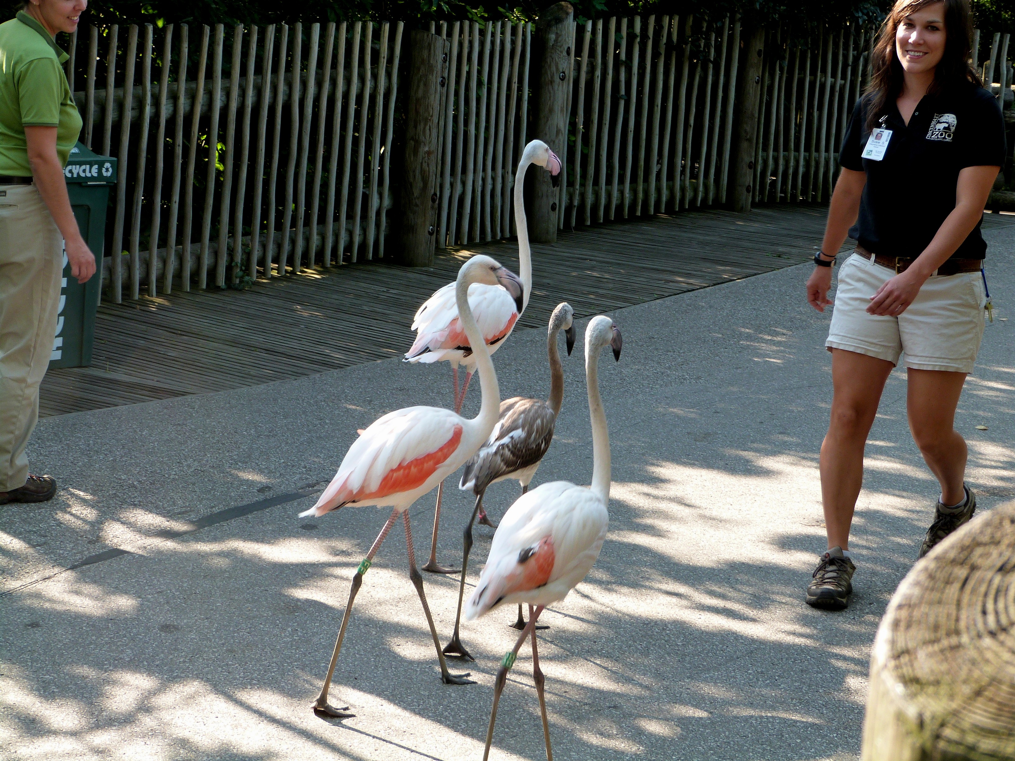 Well, the strolls were definitely an indication that these Greater Flamingos were in control of their trainers.