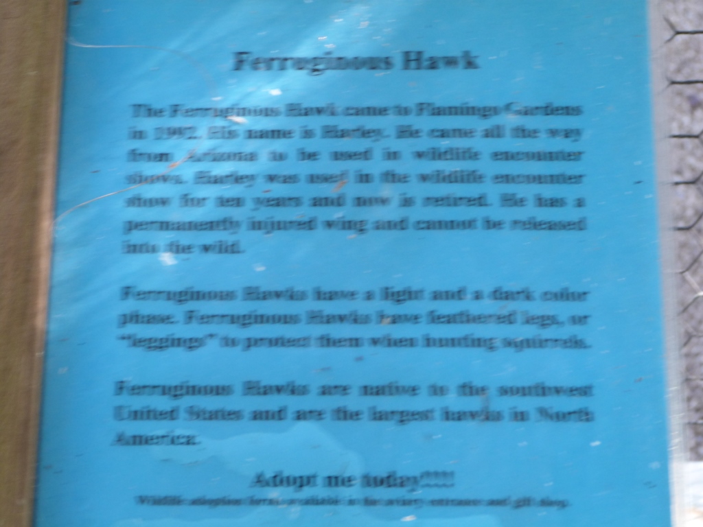 Ferreginous Hawk at Flamingo Gardens by Lee (60) Published January 3, 2015 at 1024 × 768 in Sunday Inspiration – Flamingo Gardens ← Previous Next → Ferreginous Hawk Share this: Email a link to a friend (Opens in new window) Email More Share on Pinterest (Opens in new window) Pinterest Like Loading...