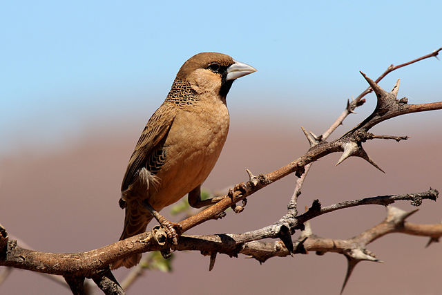 Sociable Weaver (Philetairus socius) ©WikiC Published January 23, 2016 at 640 × 427 in Sunday Inspiration – Old World Sparrows ← Previous Next → Sociable Weaver (Philetairus socius) ©WikiC PAS-Pass Sociable Weaver (Philetairus socius) ©WikiC Share this: Email a link to a friend (Opens in new window) Email More Share on Pinterest (Opens in new window) Pinterest Like Loading...