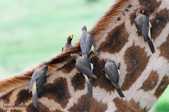 Yellow-billed Oxpeckers on long neck of giraffe “neighbor” (close-up) Published February 11, 2016 at 590 × 392 in Cattle Egrets, Cattle, and Other Herbivore Neighbors ← Previous Next → [Fair Use image credit: http://www.besgroup.org/2010/11/09/the-yellow-billed-oxpecker-and-the-giraffe/ ] Share this: Email a link to a friend (Opens in new window) Email More Share on Pinterest (Opens in new window) Pinterest Like Loading...