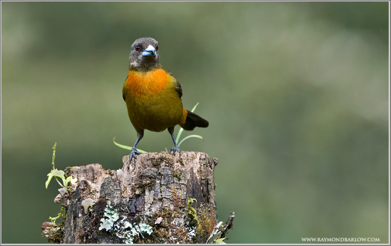Wait until you see the second very colorful genus, the Ramphocelus. These are Neotropical birds that have enlarged shiny whitish or bluish-grey lower mandibles, which are pointed upwards in display. However, this is greatly reduced in the females of most species. Males are black and red, orange or yellow, while females resemble a duller version of the males, or are brownish or greyish combined with dull red, orange or yellowish.