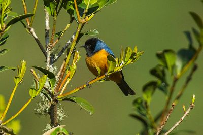 This week will end with two genus that have only one species each, the Vermilion Tanager (Calochaetes coccineus) and the Blue-backed Tanager (Cyanicterus cyanicterus). All the birds this week live from Mexico down through South America.