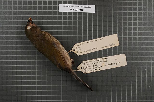 Lesser Antillean Saltator (Saltator albicollis) Specimen ©WikiC Published September 3, 2016 at 640 × 426 in Sunday Inspiration – Cardinalidae Wrap-up ← Previous Next → Lesser Antillean Saltator (Saltator albicollis) Specimen ©WikiC PAS-Thra Lesser Antillean Saltator (Saltator albicollis) Specimen ©WikiC Share this: Click to email a link to a friend (Opens in new window) Email More Click to share on Pinterest (Opens in new window) Pinterest Like Loading...