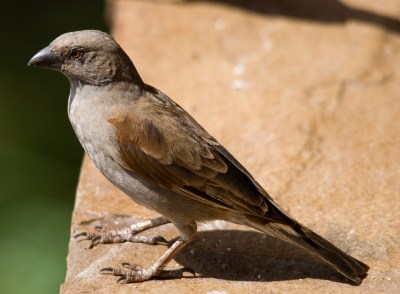 The Parrot-billed Sparrow (Passer gongonensis) is found in the arid lowlands of eastern Africa. At 18 centimeters (7.1 in) and 42 grams (1.5 oz), it is largest of the sparrows of the family Passeridae. It is often considered a subspecies of the grey-headed sparrow. Lives in extreme SE Sudan to S Ethiopia, S Somalia, Kenya and NE Tanzania. Habitats: Deserts and Xeric Shrublands; Tropical and Subtropical Moist Broadleaf Forests:
