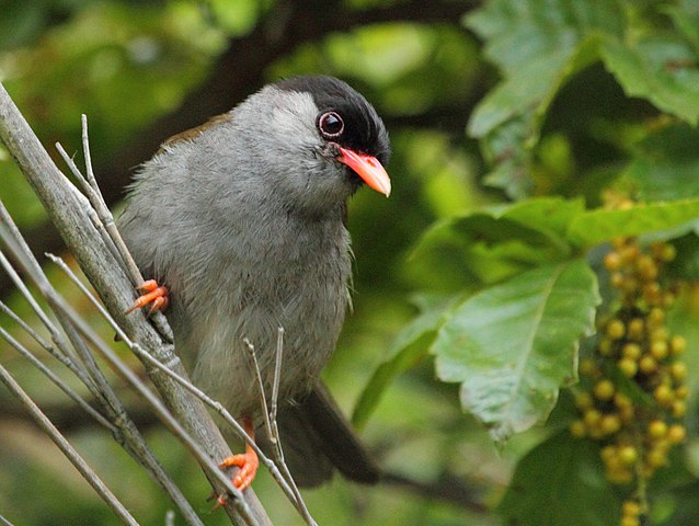 The Bush Blackcap (Lioptilus nigricapillus) is a species of bird in the family Sylviidae. It is monotypic within the genus Lioptilus.[2] It is found in South Africa and Swaziland. Its natural habitats are subtropical or tropical moist montane forests and subtropical or tropical high-altitude shrubland. It is threatened by habitat loss. (Bush Blackcap – Wikipedia) (Sylviidae – Sylviid Babblers Family)