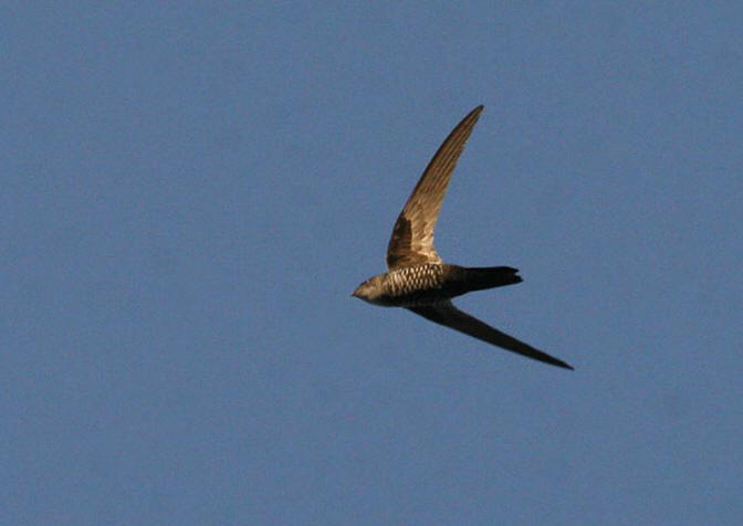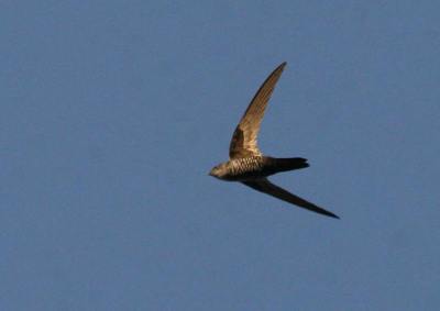 The Cook’s Swift (Apus cooki), is a small bird, superficially similar to a house martin. It is, however, completely unrelated to those passerine species, since swifts are in the order Apodiformes. These birds have very short legs which they use only for clinging to vertical surfaces. The scientific name comes from the Greek απους, apous, meaning “without feet”. They never settle voluntarily on the ground. Blyth’s swifts spend most of their lives in the air, living on the insects they catch in their beaks.