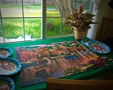 I sit at a table which always has a puzzle on it, and if I don’t make sudden moves, I enjoy watching them. Of course the Sandhill Cranes walk around the neighborhood, The Cooper’s Hawks and Crows don’t come to my yard, but I see them in the trees as I walk.