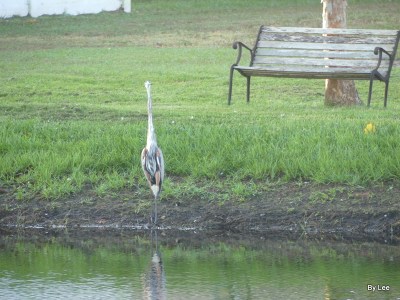 A Great Blue Heron has visited and sat on the other side several times. The Snowy Egret walked along the bank with his yellow feet showing. A Little Blue Heron also came by about the same time a Tricolored Heron took a stroll along the bank.