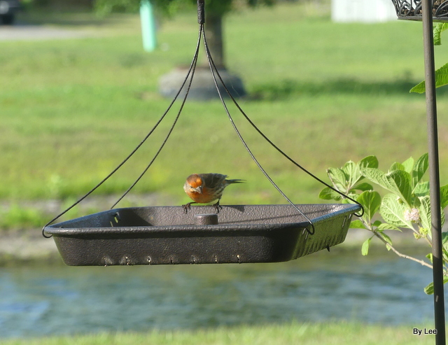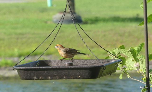 We still have that Variant House Finch stopping by. He feeds at the feeder up by the door. Much safer there. The sun was shining brightly, and it made him almost glow. Here a few I took a few days ago: