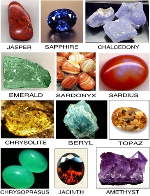 While searching for material on these foundation stones, this article caught my attention. It appears that Cindy had the same questions as we are trying to figure out. I believe her blog is inactive, but this is still posted. Precious Jewels by Cindy. She had this chart with 12 stones of the foundations.