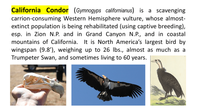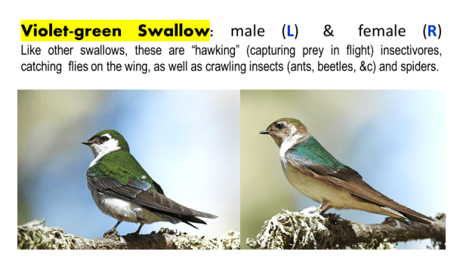 The Cornell Lab’s Merlin app also identifies birds visually – you just “zoom [in] until your bird fills the box” (on your smart-phone), then the Merlin app identifies the bird, plus it supplies some basic information about the bird that you are photographing on your smart-phone. Nice!