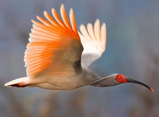 Nipponia– The crested ibis (Nipponia nippon), also known as the Japanese crested ibis or toki (トキ?), variously written in kanji as 朱鷺, 鴇, 鵇 or 鴾, and written in hanzi as 朱䴉 or 朱鷺, is a large (up to 78.5 cm (30.9 in) long), white-plumaged ibis of pine forests. Its head is partially bare, showing red skin, and it has a dense crest of white plumes on the nape. This species is the only member of the genus Nipponia.