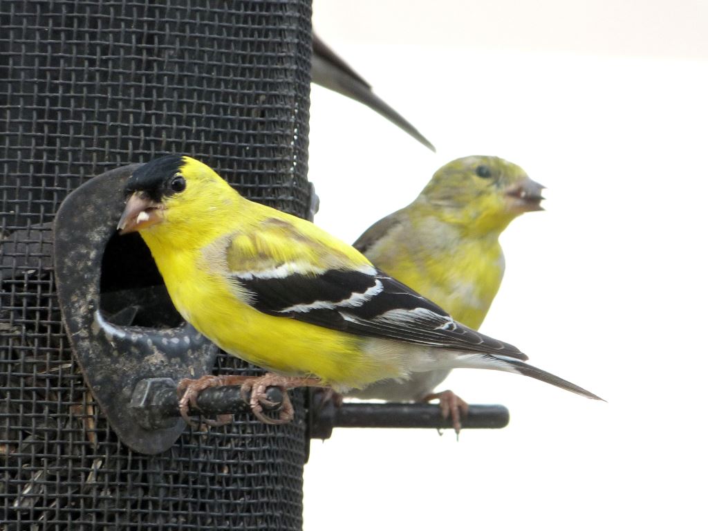 Bright yellow female American Goldfinch perched on pine sapling. Spinus tristis is a North American songbird. Photographed June 17, 2020 in Walton County, Georgia USA. ©www.williamwisephoto.com.