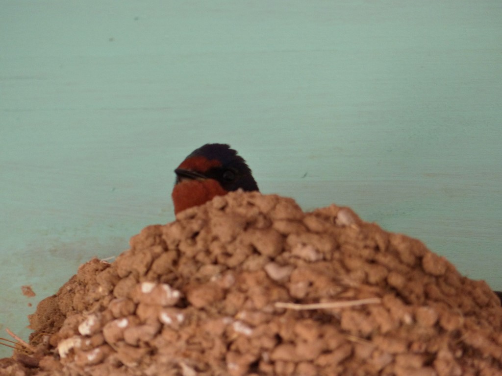 Swallows usually feed on the wing and perch above the ground. In adverse weather, they do sometimes feed on the ground and in the breeding season they land to collect mud and fibres such as grasses or horse hair to build their cup-shaped nests, sixth photo. This Spanish bird is also of the nominate race and you can see the broad breast band with no central spot. I keep mentioning this spot as, although all the field guides tell us that Welcome Swallows lack a breast band, all the birds I have photographed whether adults or juveniles have at least traces of this black spot, suggesting a close affinity with Asian Barn Swallows.