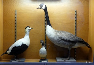 The Owls went from small to the large Great Horned Owl being the largest. The two small owls are the Boreal Owl, and the Common Screech Owl. Out of the five species, we have only seen the Red-shouldered Hawk, the Harrier and a Great Horned Owl in the wild. Again, I think these birds look pretty good, considering how long they have be preserved. [Before 1910]