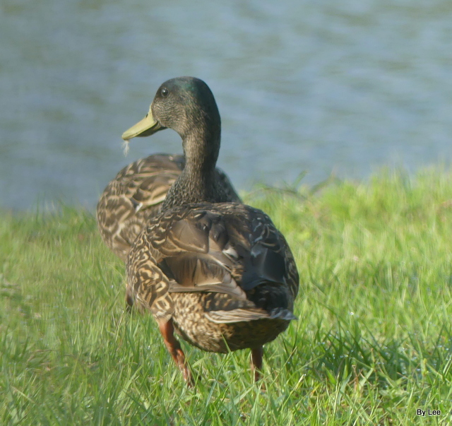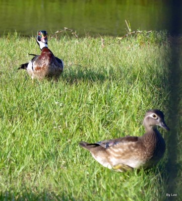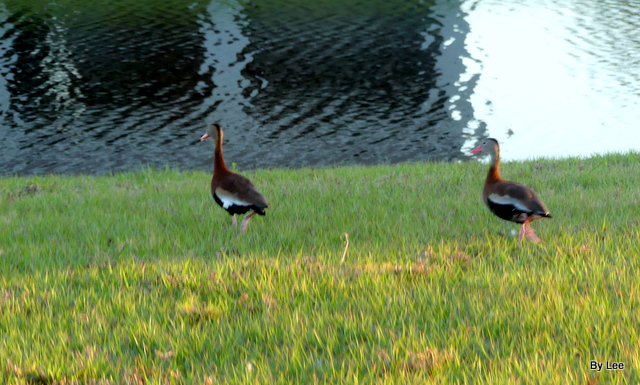 I glanced out our back door and saw two Black-Bellied Whistling Ducks just a few feet from the patio. I was so busy enjoying watching them, that I forgot to pick up my camera, which was right near me. By the time my brain kicked in and I got the lens cap off, they were heading back to the water.