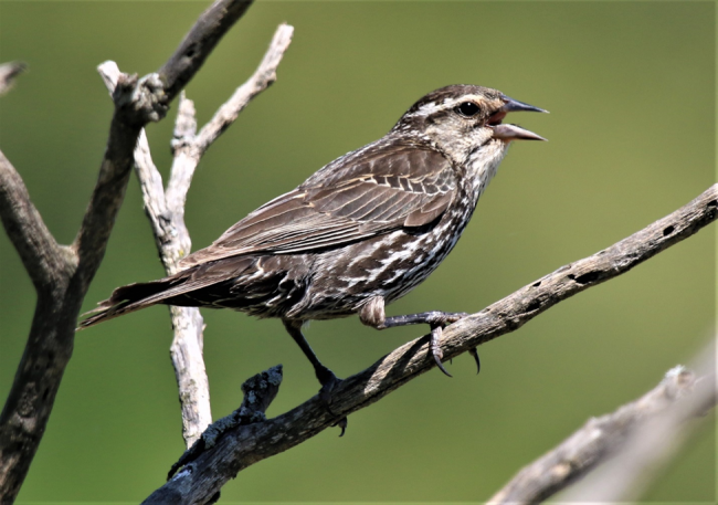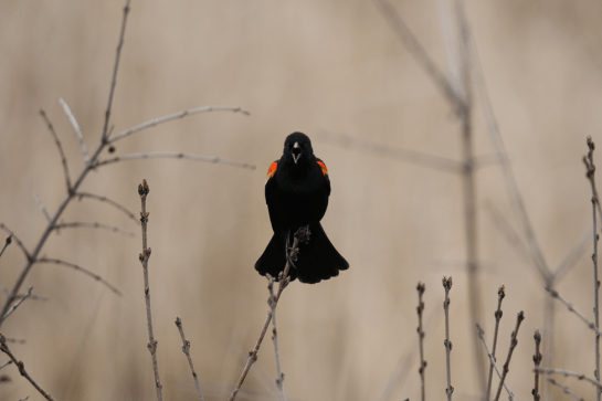 Yellow-headed Blackbirds, larger than their red-winged cousins, dominate in areas where both are present. Redwing Blackbirds appear early in spring and exploit all areas of a marsh until the yellow-heads arrive. Territorial interactions between the two are an easily observed bird behavior that is part of the springtime ritual at a marsh. Yellow-headed Blackbirds take over the prime real estate, often located near the center of large wetlands, and oust the redwings to shallower water near the edges.