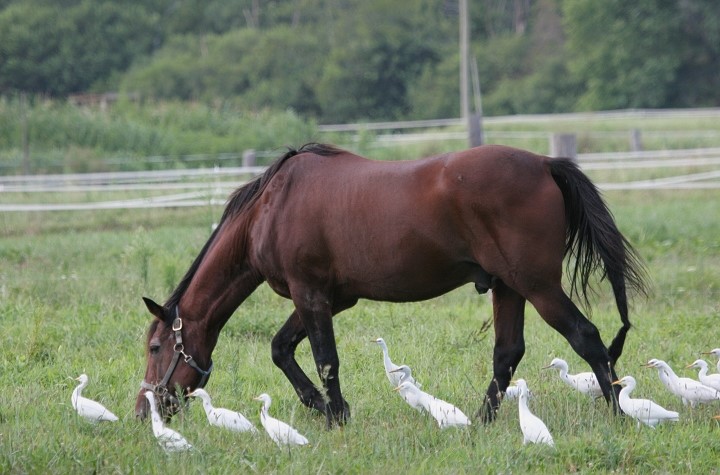 To some extent, this type of “win-win” situation sometimes occurs in nature, as is often (though not always) illustrated by the relationships of some birds — the best examples are Cattle Egrets with domestic Cattle, as well as with other large mammal herbivores (such as bison, water buffalo, bison, horses, zebras, giraffes, antelope, etc.), as the large mammals graze in tall grasses where bothersome insects and parasitic ticks abound.