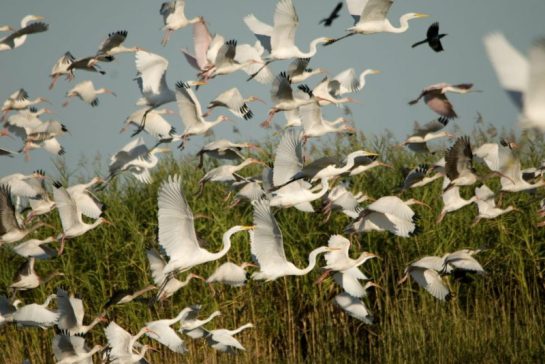 More than a century ago the Snowy Egret (as well as the Flamingo, the Roseate Spoonbill, various cranes, ducks, geese, swans, other members of the heron-egret family, doves, as well as insectivorous passerine migrants, etc.) was wastefully being hunted for its fancy feathers, jeopardizing the entire American population — until the Migratory Bird Treaty was enacted (and was enforced).