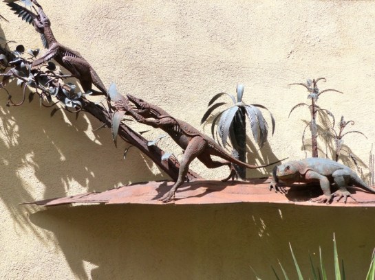 While at the Desert Museum recently, I took these pictures of this “Dinosaur to Bird’ display on one of their walls. It is seen more and more at zoos and museums, especially near the bird exhibits. Their exhibit started with the critters in the water, then fish type, getting out of the water, etc. until you have the dinosaur turning into a bird.