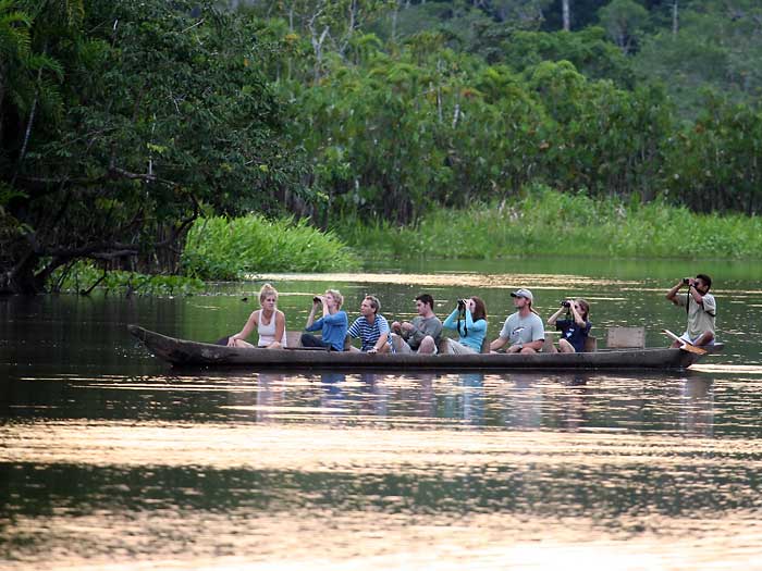 I photographed this Crimson-crested Woodpecker in 2005 from the dug-out canoe in the third photo, when staying at a lodge called Sani on the Rio Napo, a tributary of the Amazon, in eastern Ecuador. The lodge was on an oxbow lake away from the main river and the canoes, being very quiet, were ideal for bird watching though using a heavy (and expensive) 500mm lens in the canoe took some practice, not to mention recklessness.