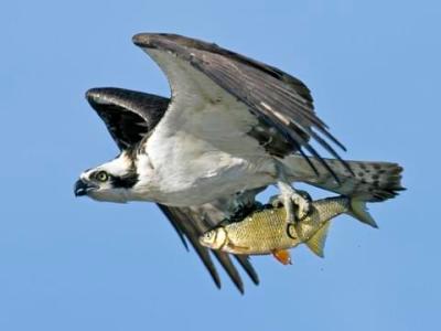 Ospreys return to the Chesapeake every spring from southern wintering grounds. Their abundance in the Bay region is due to the availability of food: They feed exclusively on live fish.