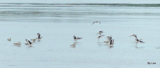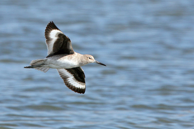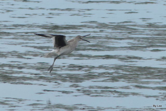 “Yes, they are.” Then she said, “I am a biologist and a Shorebird specialists.” About that time, one of the Willets from another group flew by us and she told me that the black and white wing bars are a great clue. Also, they are one of the largest shorebirds in this area.