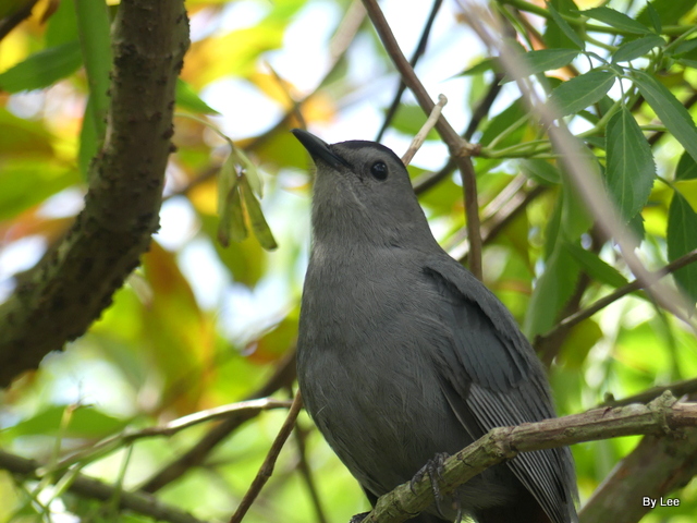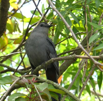 In contrast to the many songbirds that choose a prominent perch from which to sing, the catbird often elects to sing from inside a bush or small tree, where it is obscured from view by the foliage.” (Wikipedia – Gray Catbird)