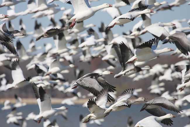 Constant honking signals the arrival of the familiar Canada goose, with its black and white head, brown back and pale breast. A favorite quarry of hunters and bird watchers, Canada geese feed in wetlands and farm fields. But keep your eye out for a lesser-known visitor, the snow goose — another guest from the far, far north, easily distinguished by its white body, black wingtips and pink feet and bills.