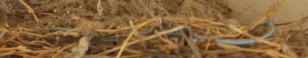 What do you see? All kinds of different material. There are weeds, pieces of paper, strings, lint, feathers, and even some “weed-eater” line (blue).