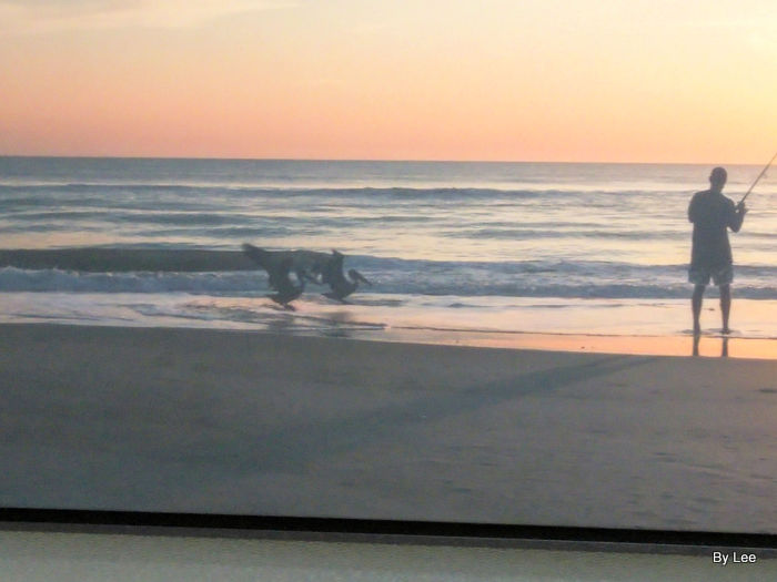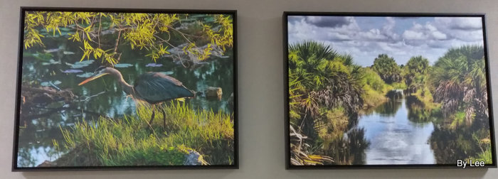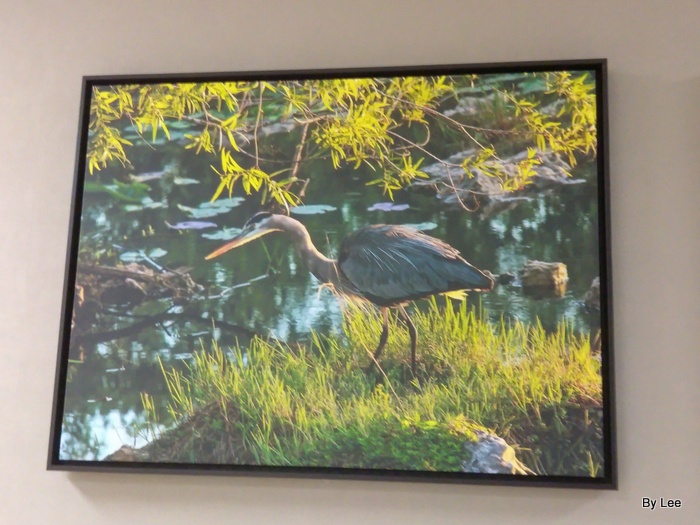 Our chairs at the table are by double-sliding glass doors. Just this morning while eating breakfast we saw two White-bellied Whistling Ducks [in the yard], Muscovy and Pekin ducks by the water, along with a Great Blue Heron walking along the shore. A female Anhinga diving for fish, A Great Egret flying by low over the water, and the Grackles and Fish Crows flying around. Not bad for a breakfast meal.