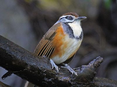 The Greater Necklaced Laughingthrush is a member of a large family of passerines known as the the Old World babblers (Timaliidae). This family is quite diverse in size and coloration, but are characterised by soft fluffy plumage — a really lame way to classify them, in my opinion, since there’s a LOT of passerines with “soft fluffy plumage” that are not included in this taxonomic family. Ho-hum.