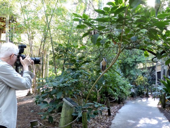 One of my favorite birds in there is the Boat-billed Heron. I think they are just cute. Two of them like to sit just above or to the side of the walkway. (In fact, one of them managed to plaster Dan and his camera on a previous visit. Yuk!) This time they behaved and was able to shoot a video right up under one of my avian friends. They are adorable, to me.