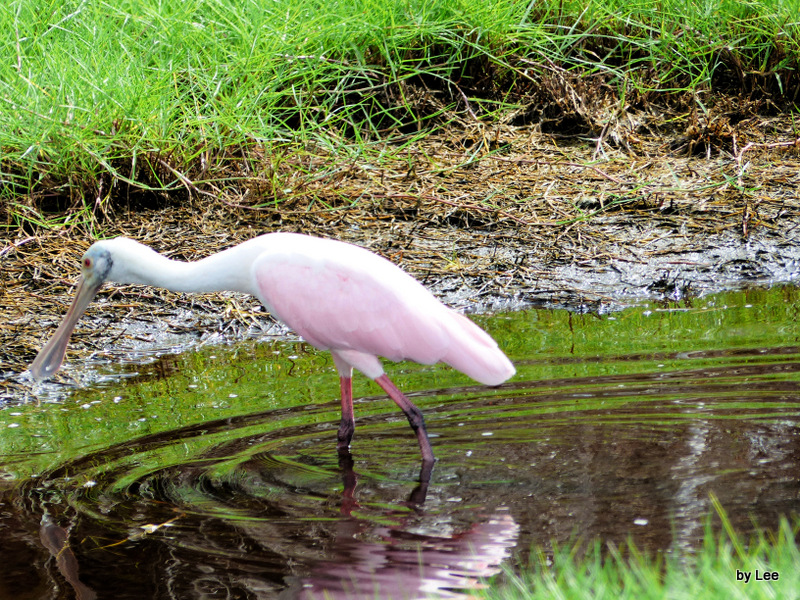 I’ve included a gallery of photos so you can see them better. If you look in the background, you will see many more of them. Also mixed in is another Roseate Spoonbill, Great Egrets, White Ibises and at least one Snowy Egret. When I zoomed in, the photos aren’t all that clear, but you can see the species.