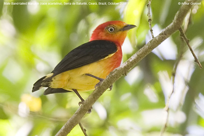 The Araripe Manakin is endemic to a very small ribbon of forest at the foot of the Chapada do Araripe escarpment, in Brazil…