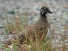 This photo of a Flock Bronzewing featured as bird of the week in June 2006. This male was one of several flocks that we saw flying across the Flinders Highway near Julia Creek late one afternoon as we were heading west towards Mount Isa and the birds, presumably, were doing their evening ritual of visiting waterholes. He obligingly decided that a pool near the road was good enough for him and landed quite close to us. This was my first, and until recently only, encounter with this enigmatic, rarely seen, nomadic pigeon of central Australia.