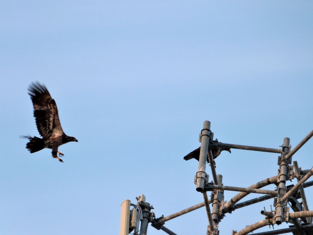 Last evening while on the way back from Bartow, a seven mile journey, we spotted not one, not two, but three Bald Eagles. Unfortunately, I again did not have anything with me except the cell phone. Dan was able to slow down a little, but with someone coming, we could not stop.