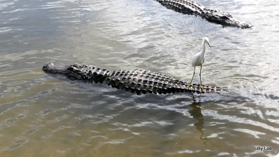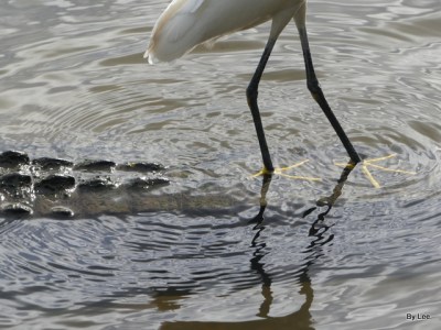 What the Snowy had in sight was an alligator, of which he flew off to check out. By then, “feet” were fascinating me, and I was watching how well those feet stayed planted on the gator’s back as he walked up and down it.