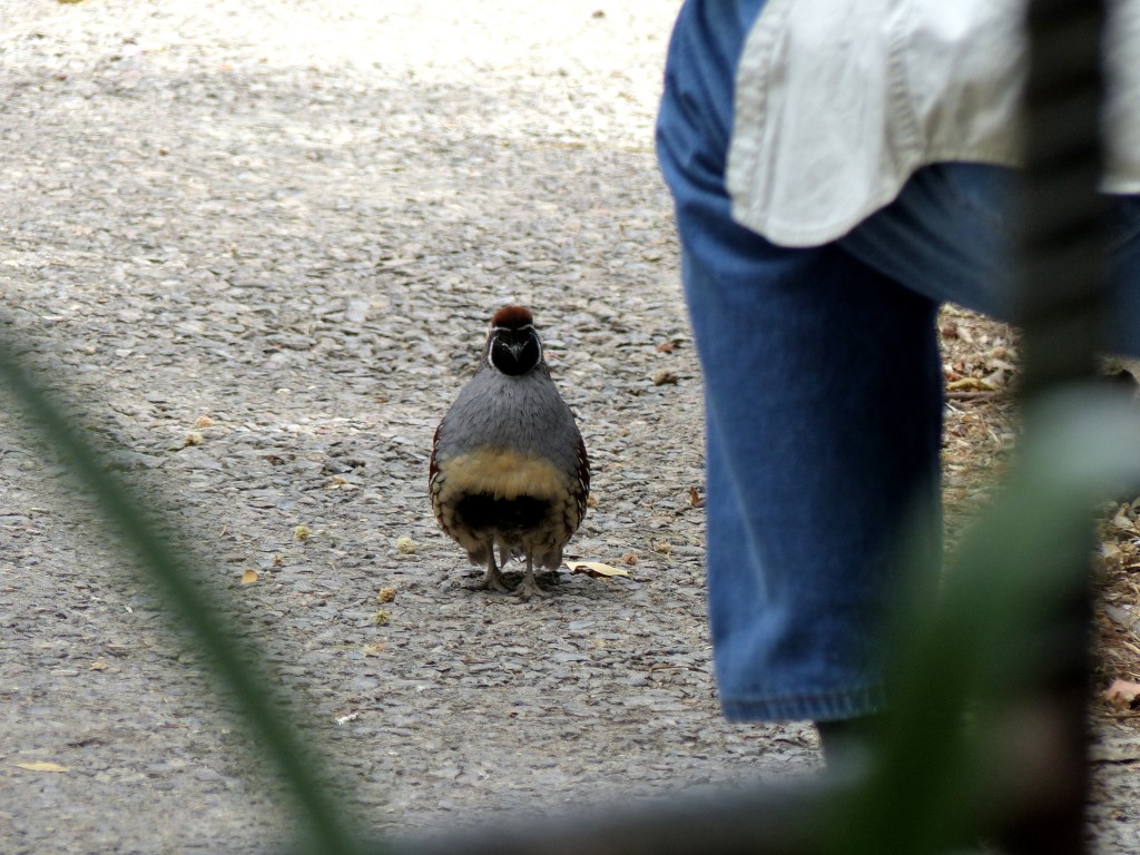 Gambel’s Quail and Dan at Desert Mus-Tucson by Lee