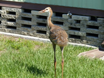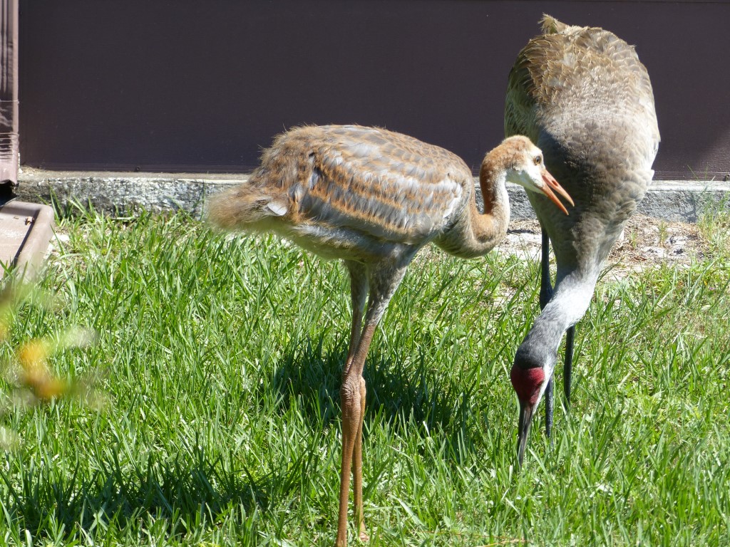 Do you remember the blog about the Sandhill Crane “Colt” Birdwatching? The little baby Sandhills were just a day old then on March 14th of this year. Today is August 27th of 2010 and they were visiting in my backyard with their parents. As you can see, they are growing up quite well. We have been watching them over the last five months. Couldn’t resist getting the camera out and updating their progress.