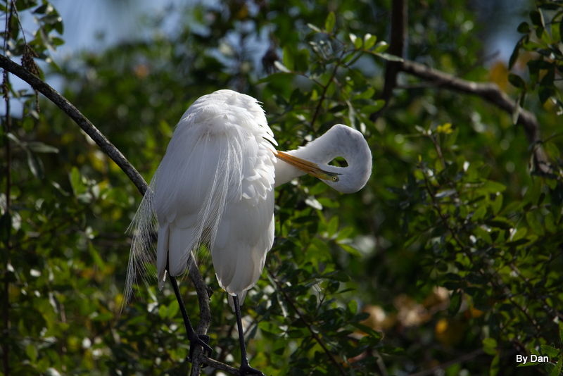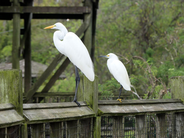 Interestingly, there is an “albino” version (endemic subspecies) of the Great Blue Heron, called the “Great White Heron”. In other words, this version of the Great Blue Heron is white, but it’s not a Great White Egret. It’s seen in the Florida Keys. In fact, there is a national wildlife refuge named for it: Great White Heron National Wildlife Refuge, just west of national Key Deer Refuge.
