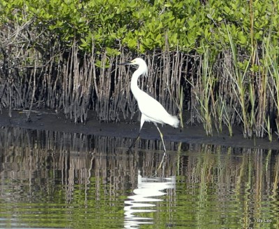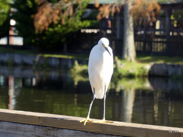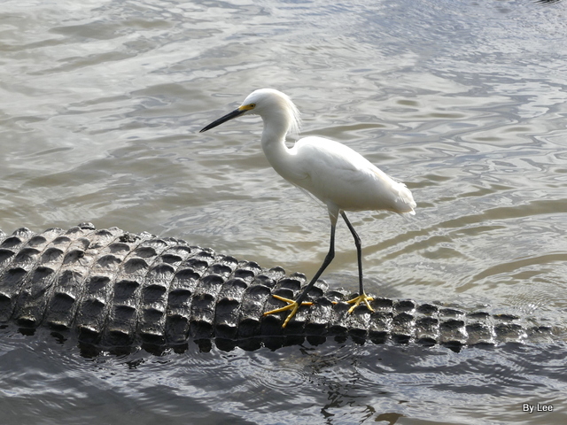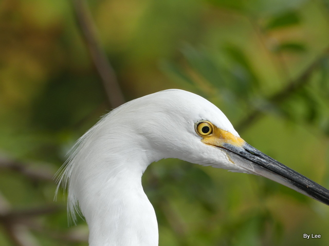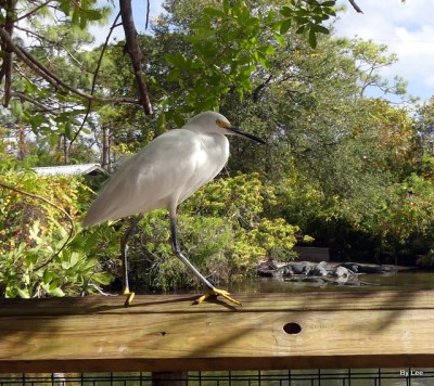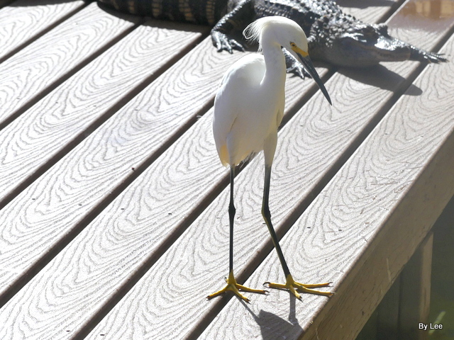 Of course, the Snowy Egret is a Florida favorite — especially to LEESBIRD.COM visitors. Snowy legs are black, but look at those yellow feet! Some call them “golden slippers”, since they walk, strut, and amble upon their feet; others say “golden gloves” since snowies use them as prehensile fingers, grasping things.