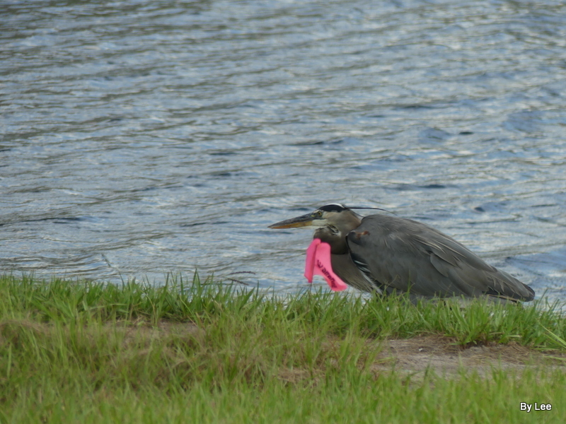 Of course, South Florida has lots of inland and coastal waters, so the opportunities for hunting and eating aquatic prey seems boundless, as a practical matter (to a hungry heron). Consider this Great Blue Heron, eating what looks like a catfish. Of course, there are many other heron-like birds in South Florida. For another example, consider the Little Blue Heron, which is often found in the Everglades. The Little Blue Heron has bluish-grey plumage, ivory white legs and feet, and a whitish dagger-like bill.