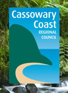 On the way to Cairns we spent a night at Etty Bay on the ‘Cassowary Coast’, the name of the local government region that covers Mission Beach and Innisfail. Etty Bay is, I think, the best place to see Cassowaries, as at least one regular patrols the camping and picnic area looking for scraps of food. The Cassowary Coast has the following logo, and I wanted to take a photo of a Cassowary that emulated the sign (which emulates a Cassowary).