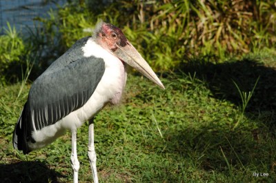 This Marabou Stork, photo scanned from film, is hanging around near a buffalo carcass, killed by lions, waiting for its turn after the vultures have left some scraps it can pick up. Stork bills are designed for fishing, not dismembering carcasses. They also frequent rubbish dumps; no doubt they play an important role as garbage collectors but it doesn’t add to their appeal.