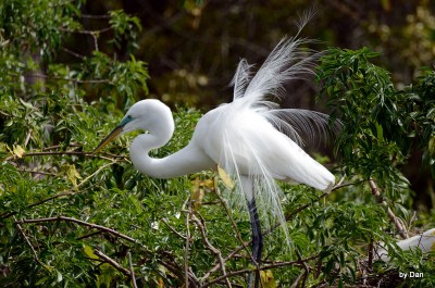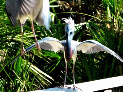 While seated for breakfast, here came the bird again. This time I realized what I was seeing. [No camera handy, of course] It was a huge, immature Bald Eagle being chased by a angry Boat-tailed Grackle. Wow! He swooped up again.